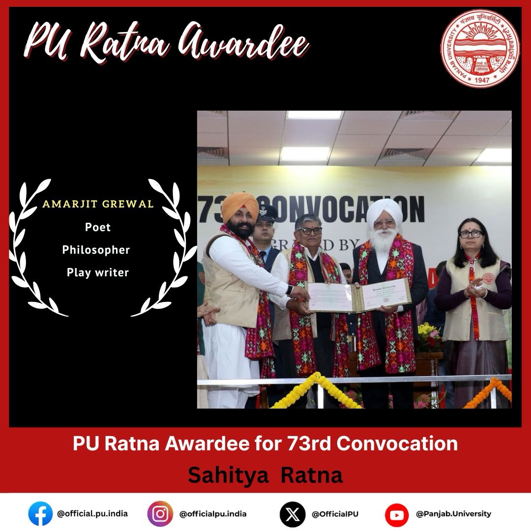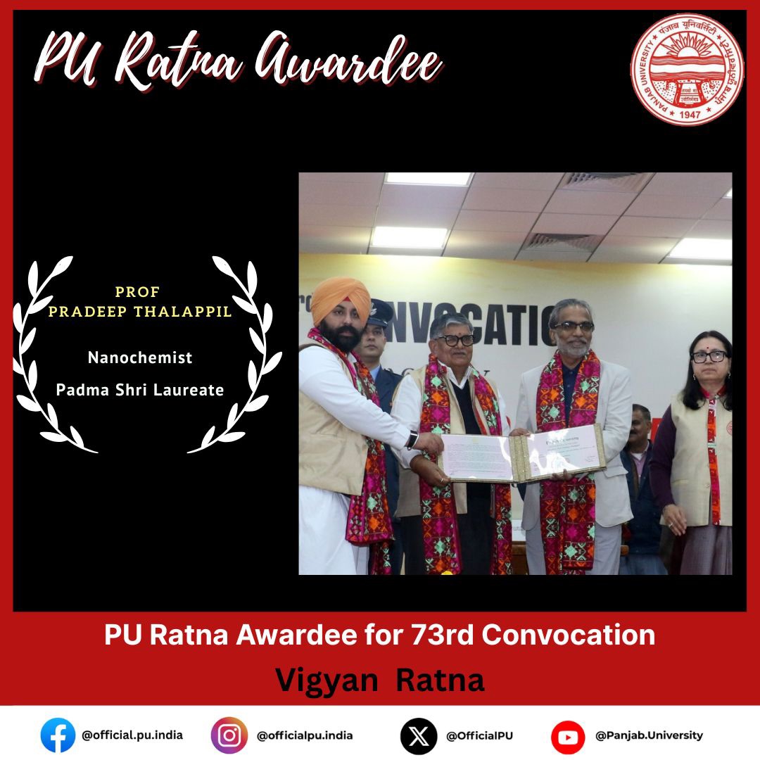 Punjab Governor and UT Administrator Shri Gulab Chand Kataria presided over the 73rd Convocation of Panjab University, where students of the 2025 batch were awarded degrees, medals and prizes. Honoris Causa degrees and PU Ratna awards were conferred upon Prof. K.N. Pathak (Doctor of Science), Dr Vijay P. Bhatkar (Doctor of Science), Justice Adarsh Kumar Goel (Doctor of Laws), Prof. Pradeep Thalappil (PU Vigyan Ratna Award), Sarabjot Singh (PU [...]