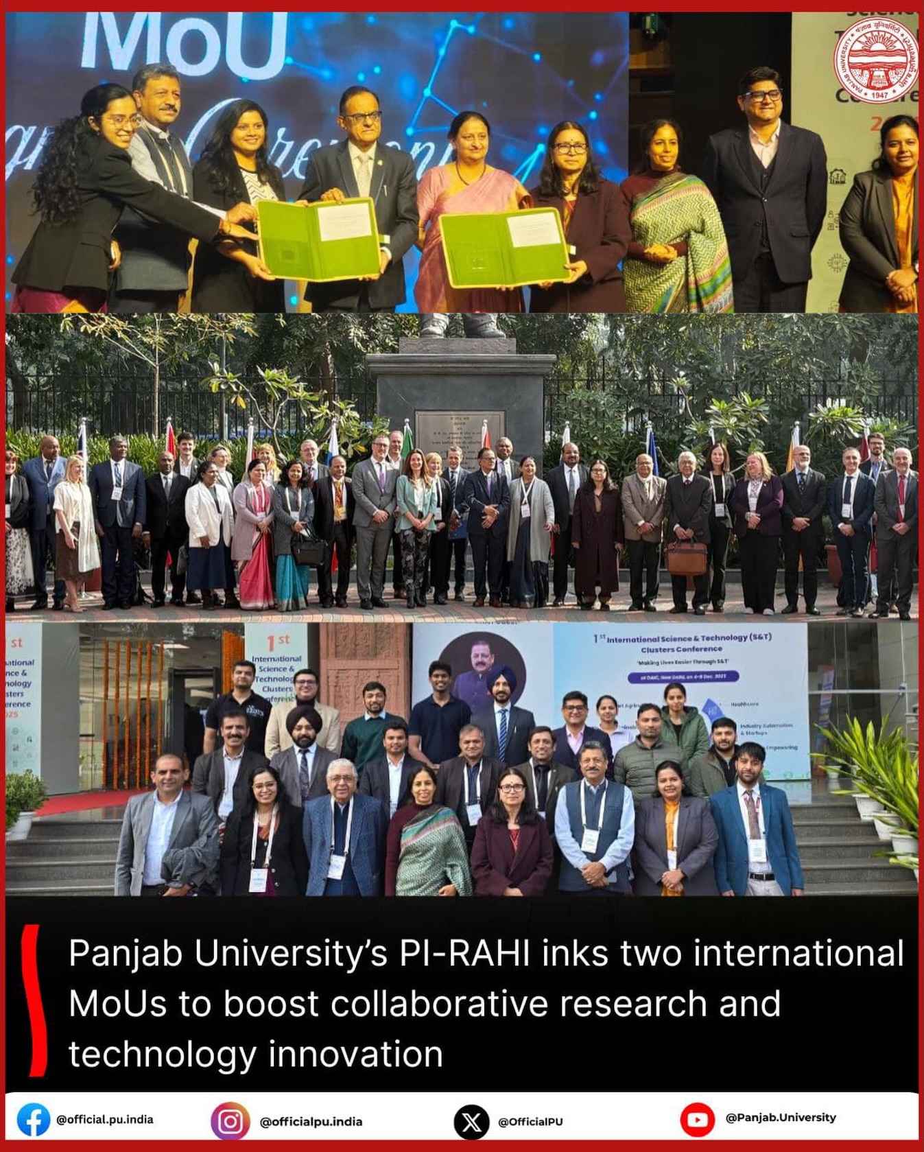 Panjab University Vice Chancellor and PI-RAHI (Panjab University–IIT Ropar Regional Accelerator for Holistic Innovations) Chairperson Prof Renu Vig, along with senior officials, participated in the 1st International Science and Technology Clusters Conference “Making Lives Easier Through S&T” at the Dr Ambedkar International Centre in New Delhi.